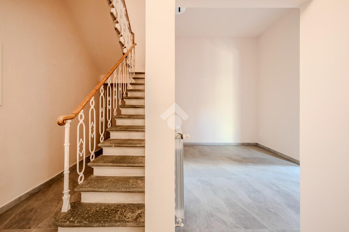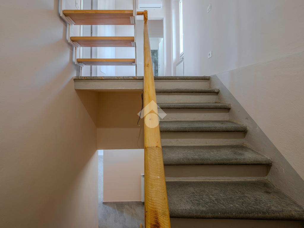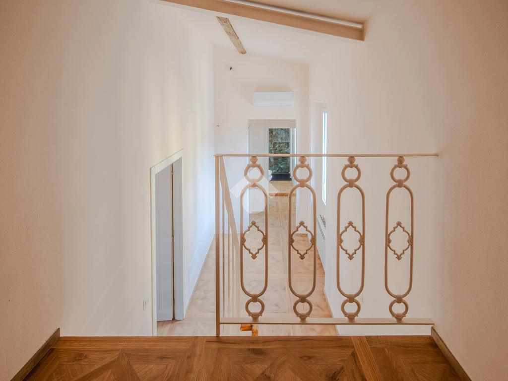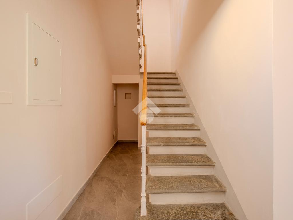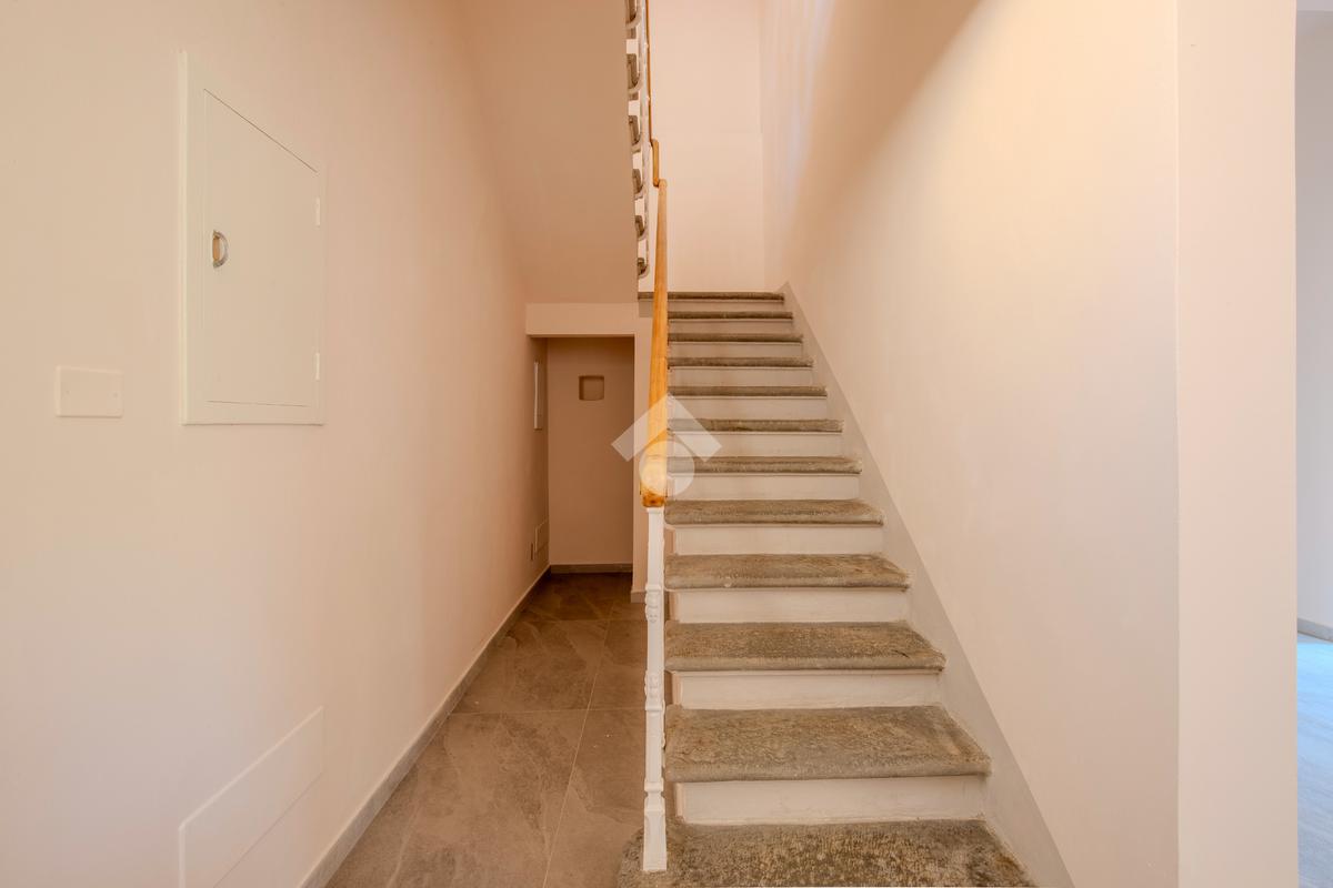 Si accede al piano superiore grazie alla caratteristica scala in pietra serena che ci accompagna nella zona notte, dal volume del vano scala è stato ricavato un comodo soppalco.