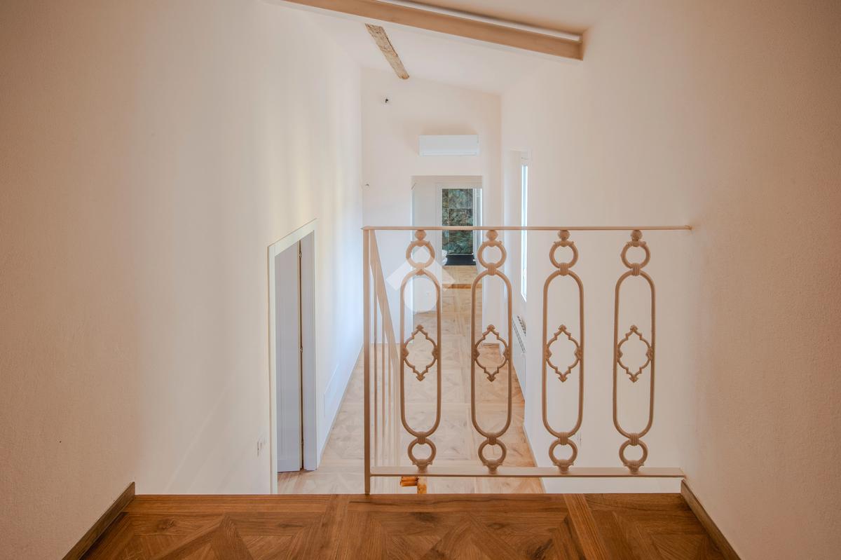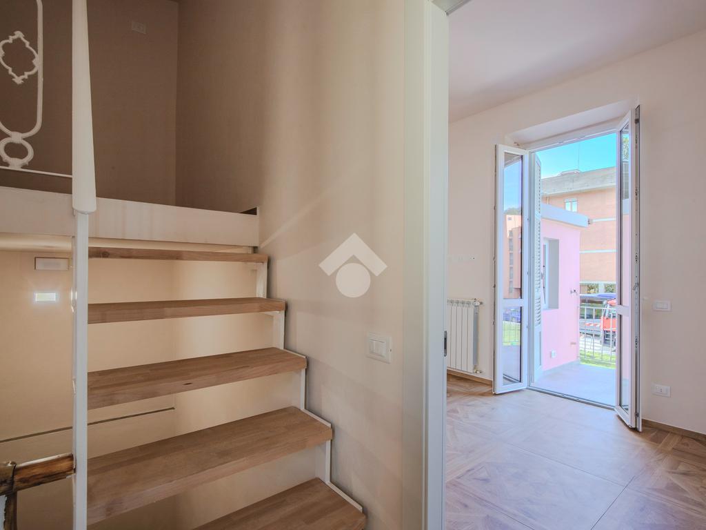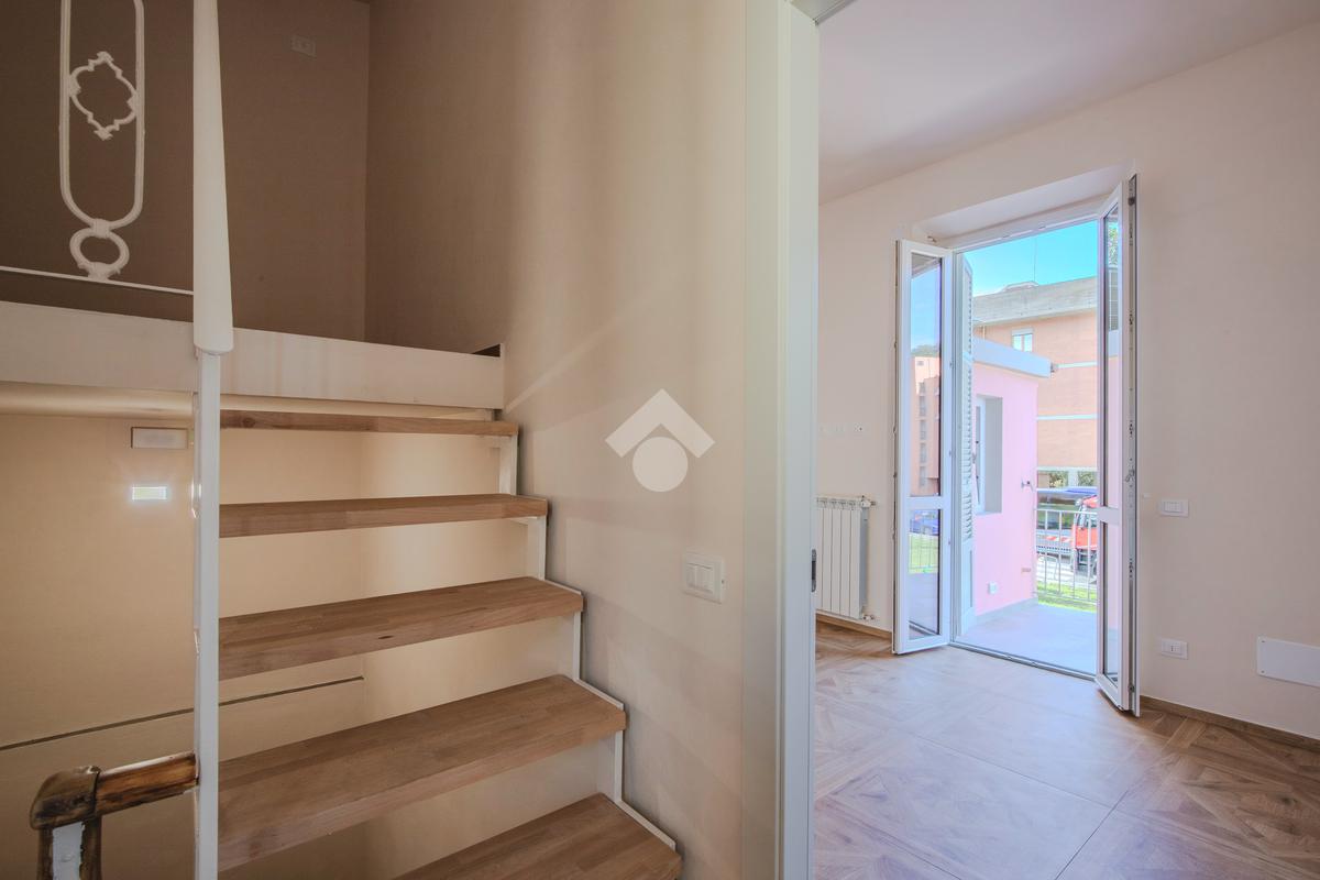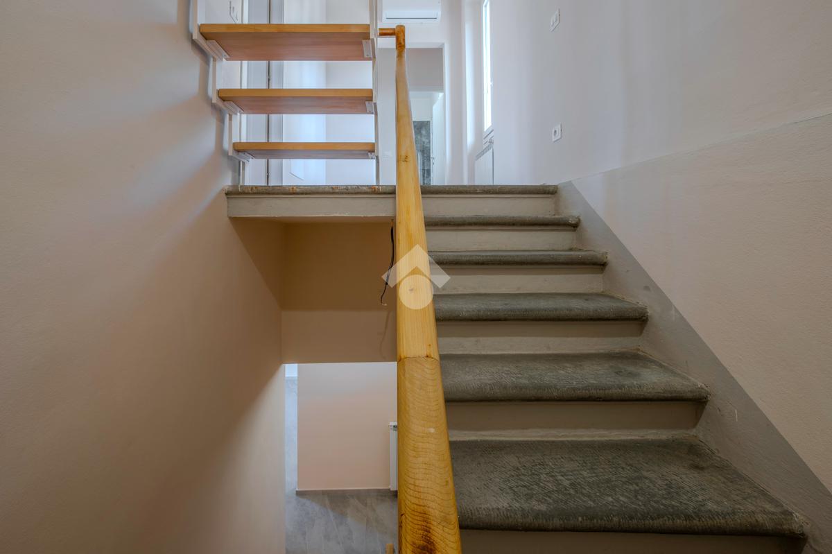 Si accede al piano superiore grazie alla caratteristica scala in pietra serena che ci accompagna nella zona notte, dal volume del vano scala è stato ricavato un comodo soppalco.